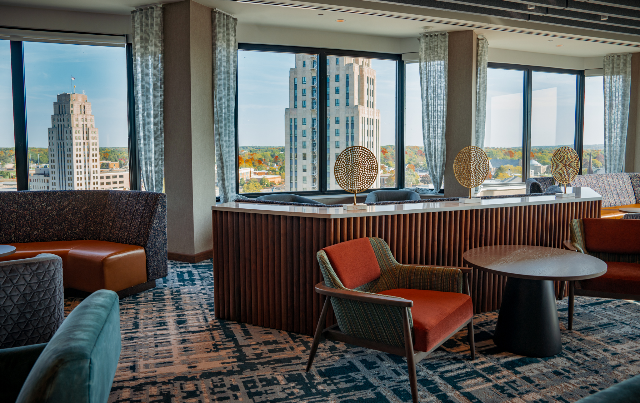 Inspired by Battle Creek’s industrial roots and storied manufacturing legacy, the design pays subtle homage to the city’s connection to Kellogg’s while introducing a refined, elevated aesthetic. Rich textures, warm finishes, and layered materials strike a balance between heritage and modernity, delivering a welcoming, sophisticated atmosphere for today’s traveler. The result is a revitalized destination that honors its past while confidently stepping into the future, offering guests an elevated stay experience rooted in place and purpose.